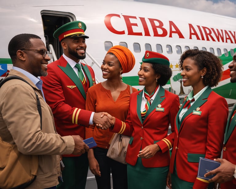 Con una identidad visual fuerte, tripulación altamente cualificada y una flota adaptada a las realidades africanas, Ceiba Airways© representa una nueva etapa para la aviación del continente: profesional, confiable y orientada al futuro.